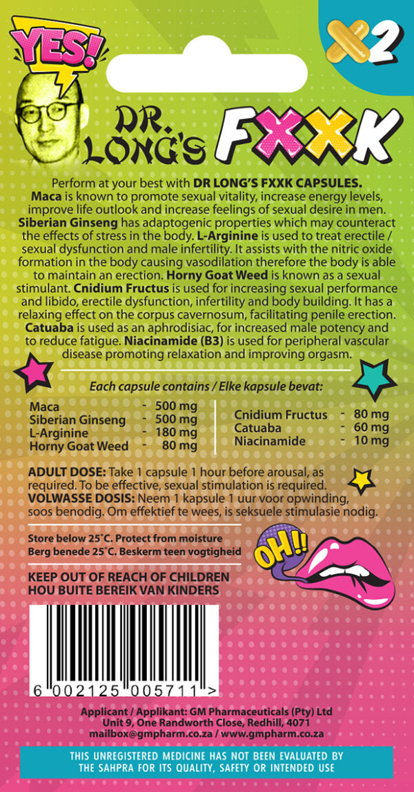 The specific ingredients in Dr. Long's FXXK Capsules may vary, but they typically include a combination of the following: