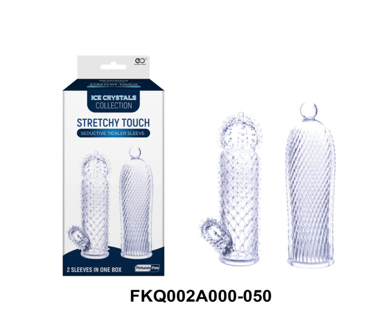 The Stretchy Touch Seductive Tickler Sleeves offer a soft, flexible way to enhance sensation and variety. Supplied as two sleeves in one box, they are designed to be stretchy, pliable, and comfortable, adapting easily for different uses.